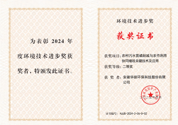 2025年4月,由安徽華騏環(huán)保科技股份有限公司與安徽農(nóng)業(yè)大學聯(lián)合申報的《農(nóng)村污水氮磷削減與農(nóng)作利用協(xié)同增效關鍵技術及應用》項目,榮獲中國環(huán)境保護產(chǎn)業(yè)協(xié)會頒發(fā)的2024年度“環(huán)境技術進步獎”二等獎。這項科研成果,成功破解了農(nóng)村污水處理與農(nóng)業(yè)資源化利用的協(xié)同發(fā)展難題,為我國鄉(xiāng)村振興戰(zhàn)略中的生態(tài)治理提供了創(chuàng)新性解決方案。