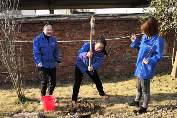 植樹現(xiàn)場,挖坑、扶苗、對齊、填土、踩實(shí),每道工序都認(rèn)真細(xì)致,員工們熱情高漲、干勁十足,齊心協(xié)力將一顆顆樹苗植入土中。五河華騏的老員工陳麗萍說:“這已經(jīng)是公司第四次舉辦植樹活動了,每次大家都積極地參與進(jìn)來,植樹活動后,大家都自發(fā)地對自己栽種的樹做好后續(xù)養(yǎng)護(hù),就像終身責(zé)任制一樣。”