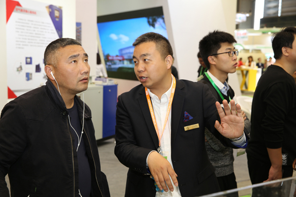 副總裁連宏偉(右)給客人做技術介紹