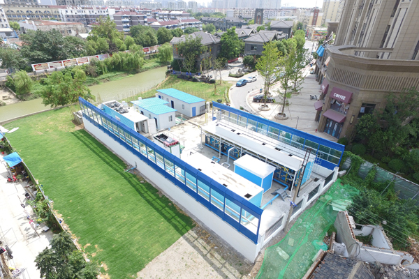 南京市浦口區南河流域凈水活水工程林公堤站點,處理規模2000m3/d,采用我司研發的Rapid-Move黑臭水體旁路處理系統——“魔方磁+魔方尊”組合工藝產品,從城南河西支沿河污水井和場站西側污水排口取水,提升至場站處理凈化達標后補水至上游西門橋處,作為河道補水水源。出水主要指標達到《地表水環境質量標準》(GB3838-2002)Ⅴ類水標準,其中氨氮達到IV類水標準。