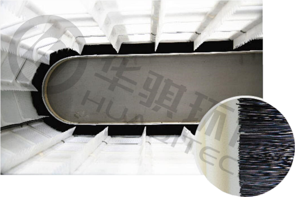· 針對導(dǎo)軌與鏈輪縫隙密封效果差導(dǎo)致的纖維狀物質(zhì)穿過的問題,設(shè)有二次密封專有技術(shù),確保無濾渣穿透到柵后