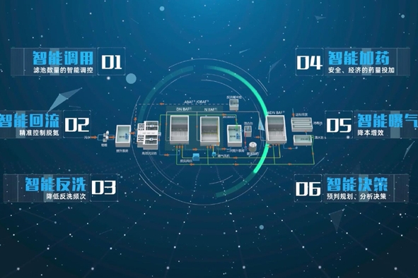 DN池、CN池運行狀態可視化,處理水量、進出水氨氮、濾池濾速、停留時間、反硝化負荷等實時數據“一屏掌控”,AI 人工智能與水廠運營無縫銜接,提供精準決策方案并高效執行,…